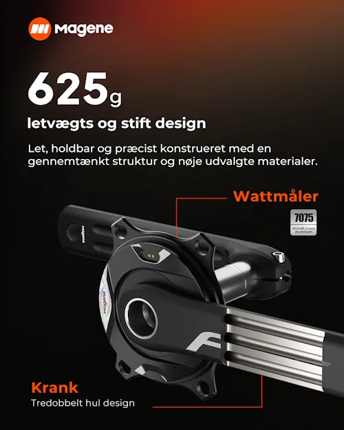 Professionel wattmåling med ±1 % præcision, avancerede cykeldata og en let, stiv konstruktion på kun 625 g.